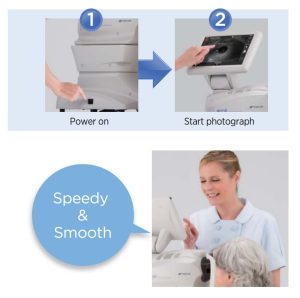 – Chỉ cần chạm nhẹ trên màn hình tại vị trí trung tâm đồng tử, thiết bị sẽ tự động định tâm, hội tụ và thu nhận hình ảnh tế bào nội mô. Toàn bộ hoạt động chỉ mất vài giây, rất nhanh và nhịp nhàng; giúp tối thiểu hóa việc huấn luyện.