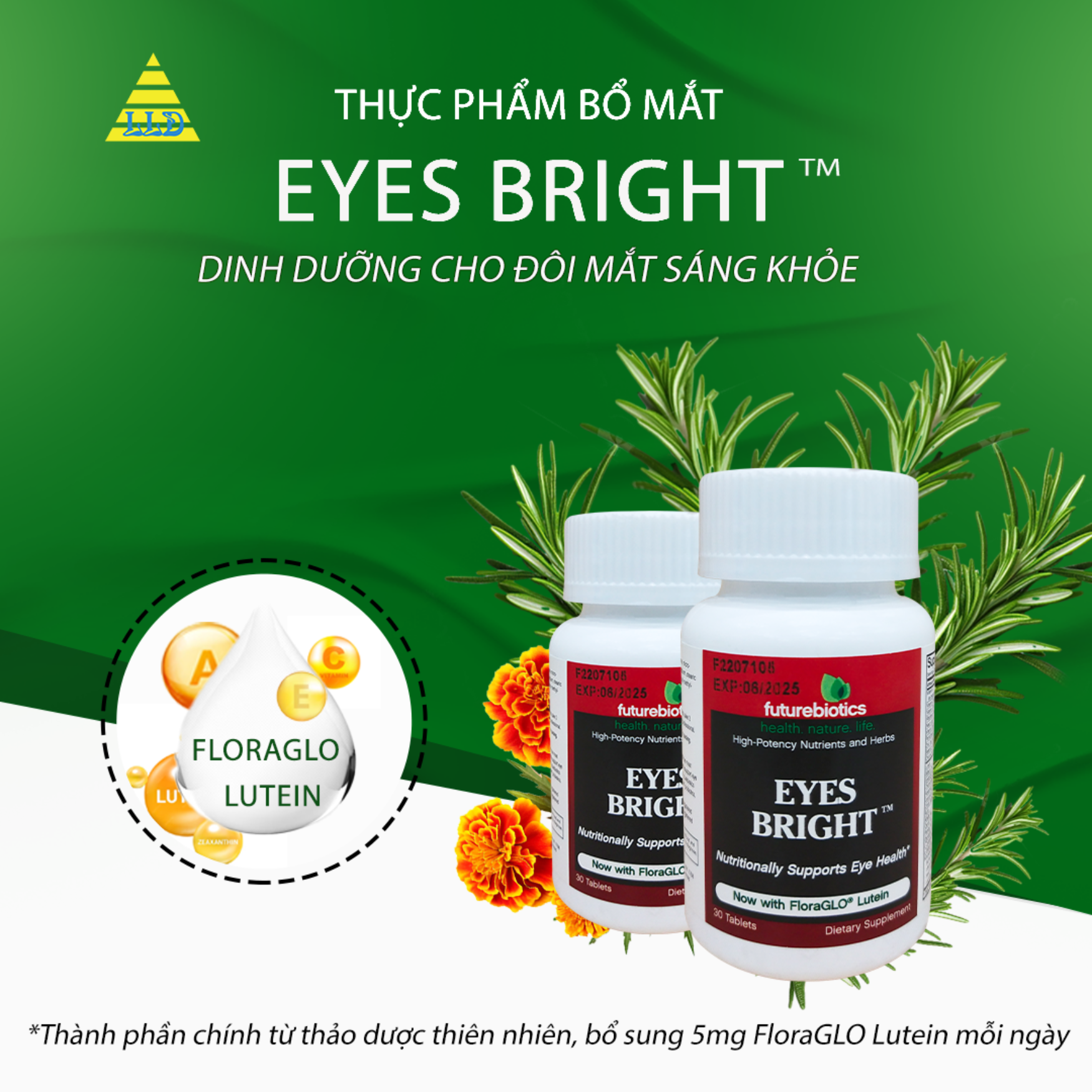 ✔ Các thành phần dinh dưỡng trong Eyes Bright được chiết xuất từ nguồn thiên nhiên nên sản phẩm được đánh giá là an toàn tuyệt đối với sức khỏe. FloraGLO Lutein là một carotene tự nhiên được chiết xuất từ hoa kim trân thảo. Tại hoàng điểm và mô của võng mạc, FloraGLO Lutein có trách nhiệm lọc tia cực tím nhằm bảo vệ mắt. Mỗi liều sử dụng Eyes Bright bạn được tận hưởng 5mg FloraGLO Lutein giúp mắt được bảo vệ tốt nhất. Ngoài ra, Eyes Bright còn chứa chiết xuất dinh dưỡng từ nhiều loài thực vật quý khác như tiêu mễ thảo, cúc La Mã, cam quýt (chất Bioflavonoid and Rutin trong họ), cỏ đinh lăng, rễ cà rốt, mùi tây, bồ công anh. Bởi vậy, sử dụng Eyes Bright bạn không lo bị dị ứng, tác dụng phụ nghiêm trọng.